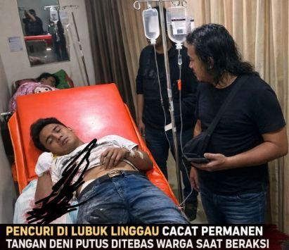 LUBUKLINGGAU, detik45.com – Seorang pria berinisial DP (23) mengalami luka berat hingga kehilangan tangan kirinya setelah diduga tertangkap warga saat hendak melakukan aksi pencurian di wilayah Kelurahan Muara Enim, Kecamatan Lubuklinggau, Rabu (26/11/2026.